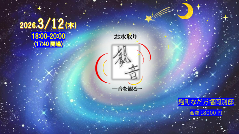 Home 2023.11.232026.02.06 『大人の夜会 結氣膳や』の 癒しのひとときをお愉しみ頂けましたら幸いです。 2026年3月12日 18時スタート ー観音お水取り 音を観るー 2025年『大人の夜会 結氣膳や』 12/14の記事はこちらから 10/14の記事はこちらから 7/28の記事はこちらから 4/23の記事はこちらから